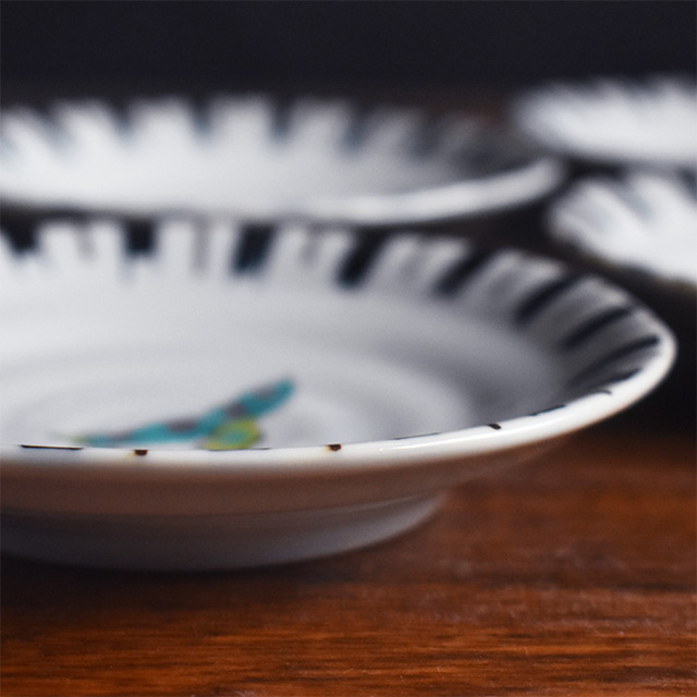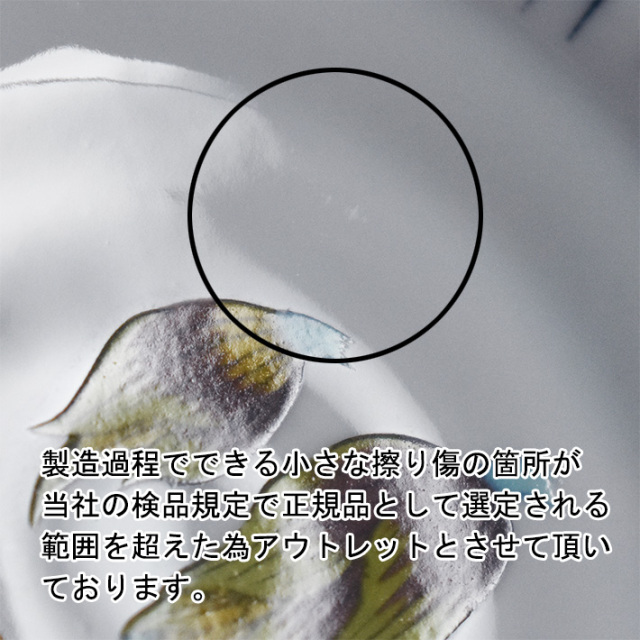 【アウトレットの理由】 正規品におきましても製作過程上でできる小さな擦り傷がある作品ですが当社の検品にて目立つ擦り傷のある作品として除外したアウトレット作品となります。背面に一部絵具汚れもあります。ご贈答品としてはお薦めできません。またアウトレット商品の為、輸送中の破損以外でのご返品・キャンセルは不可となります。 手の平サイズの小さな小皿。食卓に必ずと言っていいほど欠かせない食器です。小さな器をキャンパスに色とりどりに彩色する華やかなデザインからシンプルを極めるものまで多種多様なバリエーションがあり、毎日の食卓をデコレートする器としては、とても使い勝手の良い作品が揃っています。伝統的な画風の作品を洋風なお料理で、またモダンなデザインの作品を和食と合わせて、テーブルの上で様々なアクセントとしてご活用頂けましたら幸いです。 |