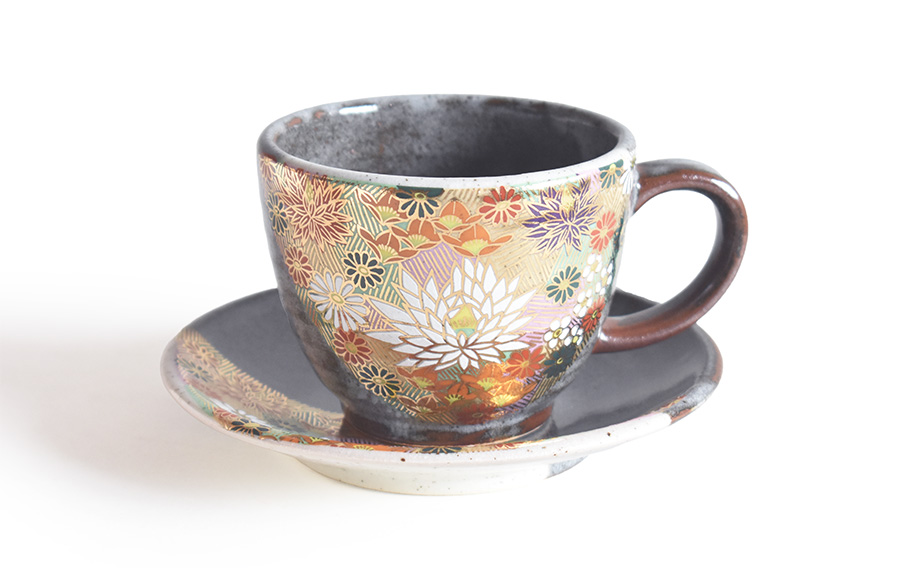 本来、コーヒーカップは洋食器のカテゴリーです。ということは九谷の地で作られるコーヒーカップは近代の作品となります。明治以降、JAPAN KUTANI(ジャパンクタニ)と呼ばれ海外への輸出が盛んになり始めた頃、西洋様式の生活文化にも合う九谷焼をとして製作されたのが始まりではないかと思います。時代が変わり現代となった今、当たり前のように使われるようになったコーヒーカップはもはや洋食器や和食器というカテゴリーではなく普段使いの器として自然と生活の中に存在します。薫り高いコーヒーを大切な人と楽しむ一時は一日の中でもとても素敵な時間の一つです。そんな大切な時間を過ごす器をデザイン性の高いコーヒーカップで彩ってみてはいかがでしょうか。