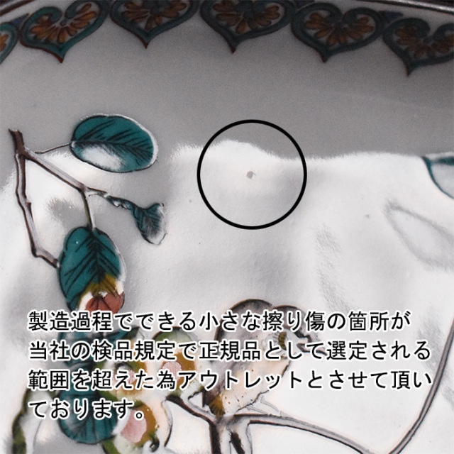 【アウトレットの理由】 製造過程でできる小さな擦り傷の箇所が当社の検品規定で正規品として選定される範囲を超えた為アウトレットとさせて頂いております。2セットの在庫にて販売させて頂いておりますがいずれの作品も同じ理由となっておりますので在庫の中の1セットの画像のみ掲載させて頂いておりますので在庫ごとに多少違いがあります。ご贈答品としてはお薦めできません。またアウトレット商品の為、輸送中の破損以外でのご返品・キャンセルは不可となります。 使い勝手の良い取り皿。食卓に必ずと言っていいほど欠かせない食器です。九谷焼の皿は、陶磁器をキャンパスに色とりどりに彩色する華やかなデザインやシンプルを極めるものまで多種多様なバリエーションがあり、毎日の食卓をデコレートする器としてとても重宝致します。伝統的な画風の作品を洋風なお料理で、またモダンなデザインの作品を和食と合わせて、 テーブルの上で様々な色合いの組み合わせをお楽しみ頂けましたら幸いです。お料理と器をゆっくりと楽しむ、そんな贅沢な時間を九谷焼とともにお過ごし頂ければと思います。 ※ご紹介中の作品写真は販売中の在庫品の中の1セットとなりますので実際お求め頂く作品と色の濃淡や絵柄の配置位置などに若干違いがございますことご了承お願い致します。 |