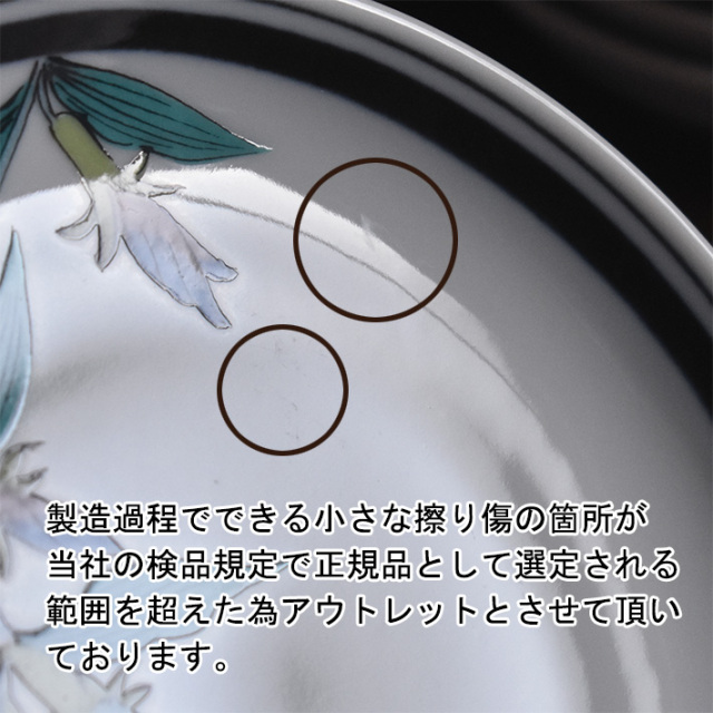 【アウトレットの理由】 お皿表面に光の加減によって見える細かな擦り傷があるのでアウトレットとさせて頂いております。ご贈答品としてはお薦めできません。またアウトレット商品の為、輸送中の破損以外でのご返品・キャンセルは不可となります。 使い勝手の良い取り皿。食卓に必ずと言っていいほど欠かせない食器です。陶磁器をキャンパスに色とりどりに彩色する華やかなデザインやシンプルを極めるものまで多種多様なバリエーションがあり、毎日の食卓をデコレートする器としてとても重宝致します。伝統的な画風の作品を洋風なお料理で、またモダンなデザインの作品を和食と合わせてテーブルの上で様々な色合いの組み合わせをお楽しみ頂けましたら幸いです。 |