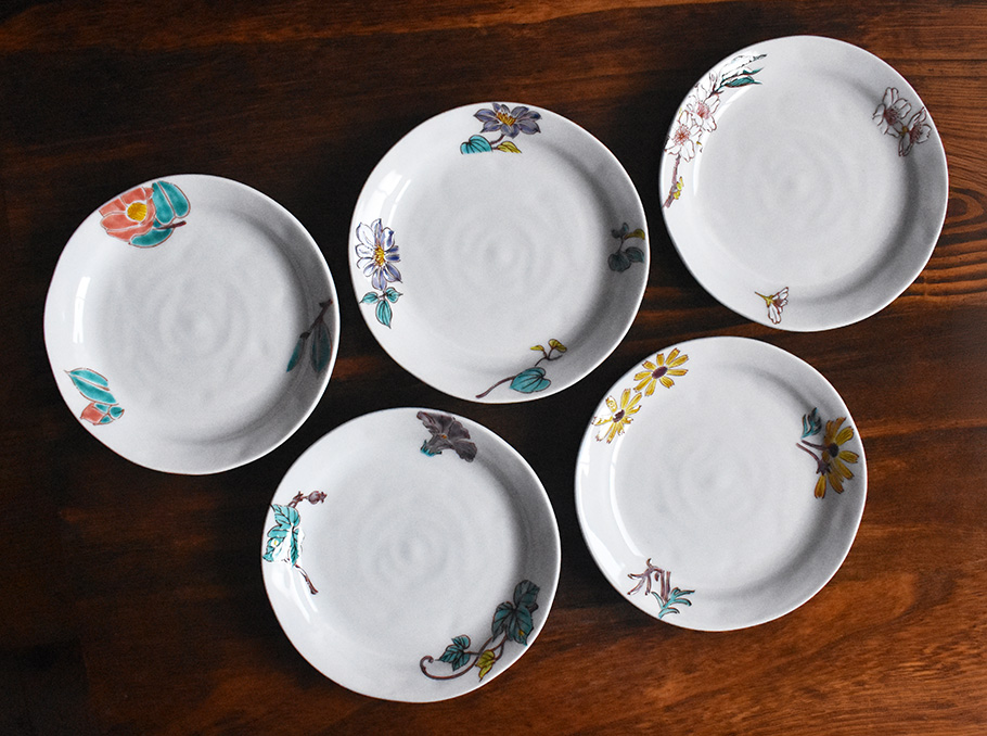 ![]() 元来、九谷焼の焼成温度は他産地(有田焼・美濃焼)などに比べると低温での焼成となっており業務用の器などのように使用頻度が通常よりも多くなる場合には耐久性という点でやや弱い部分がありました。ご家庭においても使いやすく強度の高い器を九谷焼ならではのデザインで生産するという実用性の高い食器を安定的に生産するために誕生したのがデザイン九谷です。業務用食器等で実用性、デザイン性の高い食器を長年製造している岐阜県の陶磁器メーカーの協力により提供頂いた器に九谷焼の加飾技術にてデザイン(絵付・転写等)した汎用性の高い普段使いに最適な作品です。 |