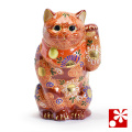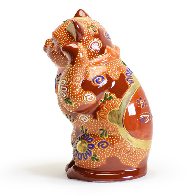 ![]() 招き猫、縁起物の中でも特に古来より日本人に愛されてきた縁起物であることは間違いありません。そして招き猫の中でも九谷焼の招き猫は特に金運に良いとされ多くの商い人により大切にされ今日に至ります。栄華を誇った加賀百万石の時代・歴史を歩んできた事も、そう語り継がれる要因の一つと云われています。 九谷焼には置物を専門に製作する職人がいます。生活空間の欧米化にともない置物を飾る場所や習慣が減少傾向にある現在、置物製作に携わる職人の数もそれにともない減ってきています。非常に高度な造形技術、そして彩色技術を必要とされる専門的な仕事を完全にこなせる熟練した職人は現代では大変希少な存在です。また技術の習得に時間を必要とする為、若手後継者が少ないのも事実です。しかし近年、再び縁起物という日本古来のパワーアイテムが注目され始めたことで置物職人の技が活かされる機会も増え始めてきており伝統の継承という未来への光が少しづつ見え始めてきています。 決してお安い作品達ではありませんが多くの皆様からのご支持を頂戴し高評価をいただいております。お求め頂きました全ての皆様が笑顔になって頂くことが縁起物の使命だと私達は考えます。長い歴史の中で継承されてきた独特なデザイン、そして重厚でありながらもどこか愛嬌のある作品の数々をご検討頂けますことお願い申し上げます。 |