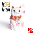![]() 招き猫、縁起物の中でも特に古来より日本人に愛されてきた縁起物であることは間違いありません。そして招き猫の中でも九谷焼の招き猫は特に金運に良いとされ多くの商い人により大切にされ今日に至ります。栄華を誇った加賀百万石の時代・歴史を歩んできた事も、そう語り継がれる要因の一つと云われています。 九谷焼には置物を専門に製作する職人がいます。生活空間の欧米化にともない置物を飾る場所や習慣が減少傾向にある現在、置物製作に携わる職人の数もそれにともない減ってきています。非常に高度な造形技術、そして彩色技術を必要とされる専門的な仕事を完全にこなせる熟練した職人は現代では大変希少な存在です。また技術の習得に時間を必要とする為、若手後継者が少ないのも事実です。しかし近年、再び縁起物という日本古来のパワーアイテムが注目され始めたことで置物職人の技が活かされる機会も増え始めてきており伝統の継承という未来への光が少しづつ見え始めてきています。 決してお安い作品達ではありませんが多くの皆様からのご支持を頂戴し高評価をいただいております。お求め頂きました全ての皆様が笑顔になって頂くことが縁起物の使命だと私達は考えます。長い歴史の中で継承されてきた独特なデザイン、そして重厚でありながらもどこか愛嬌のある作品の数々をご検討頂けますことお願い申し上げます。 |